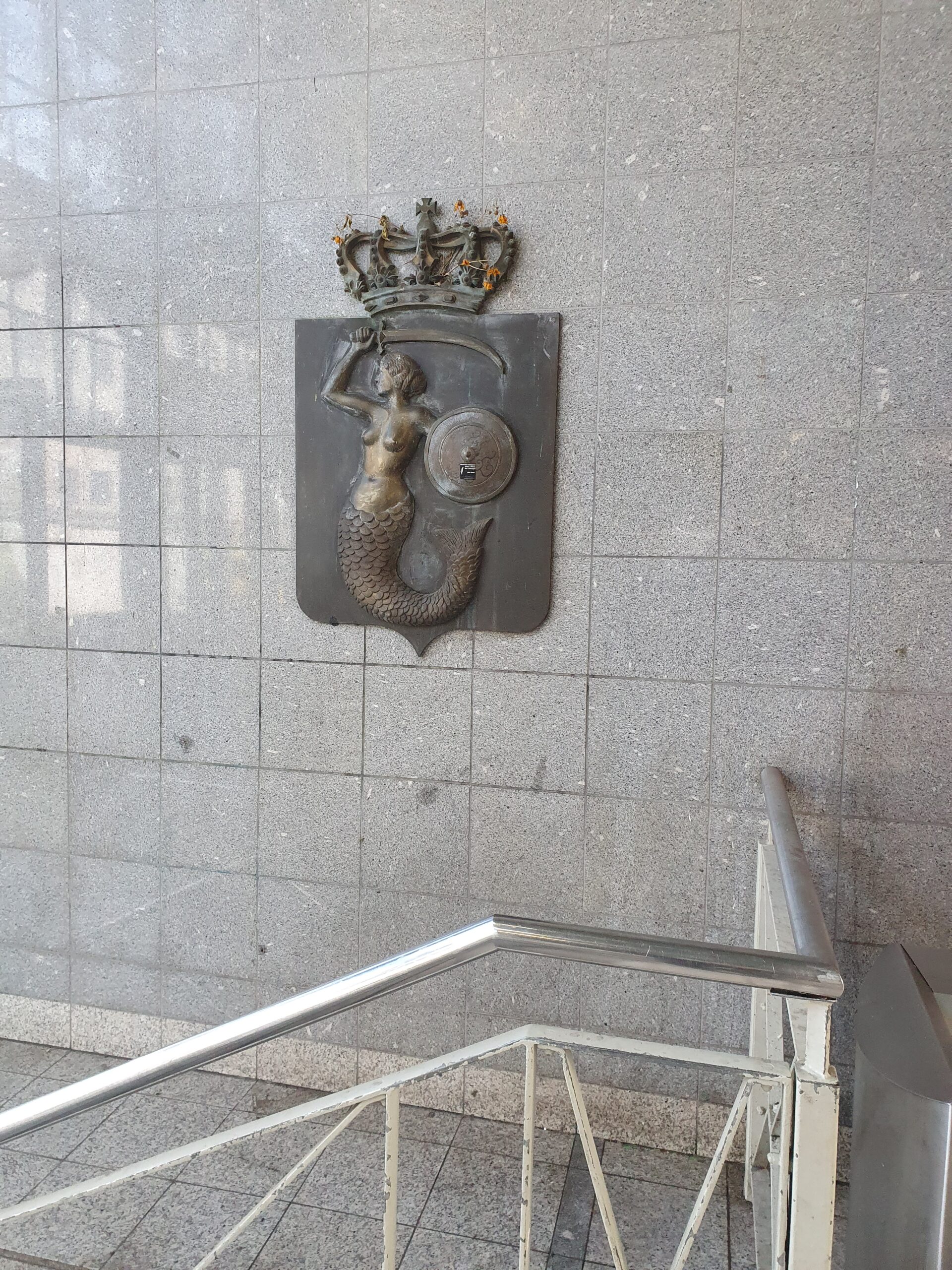 …ist eine Syrenka, also eine Meerjungfrau. Bei dem abgebildeten Zeichen handelt es sich um das Stadtwappen von Warschau, und das ist tatsächlich im Berliner U-Bahnhof Warschauer Straße versteckt.